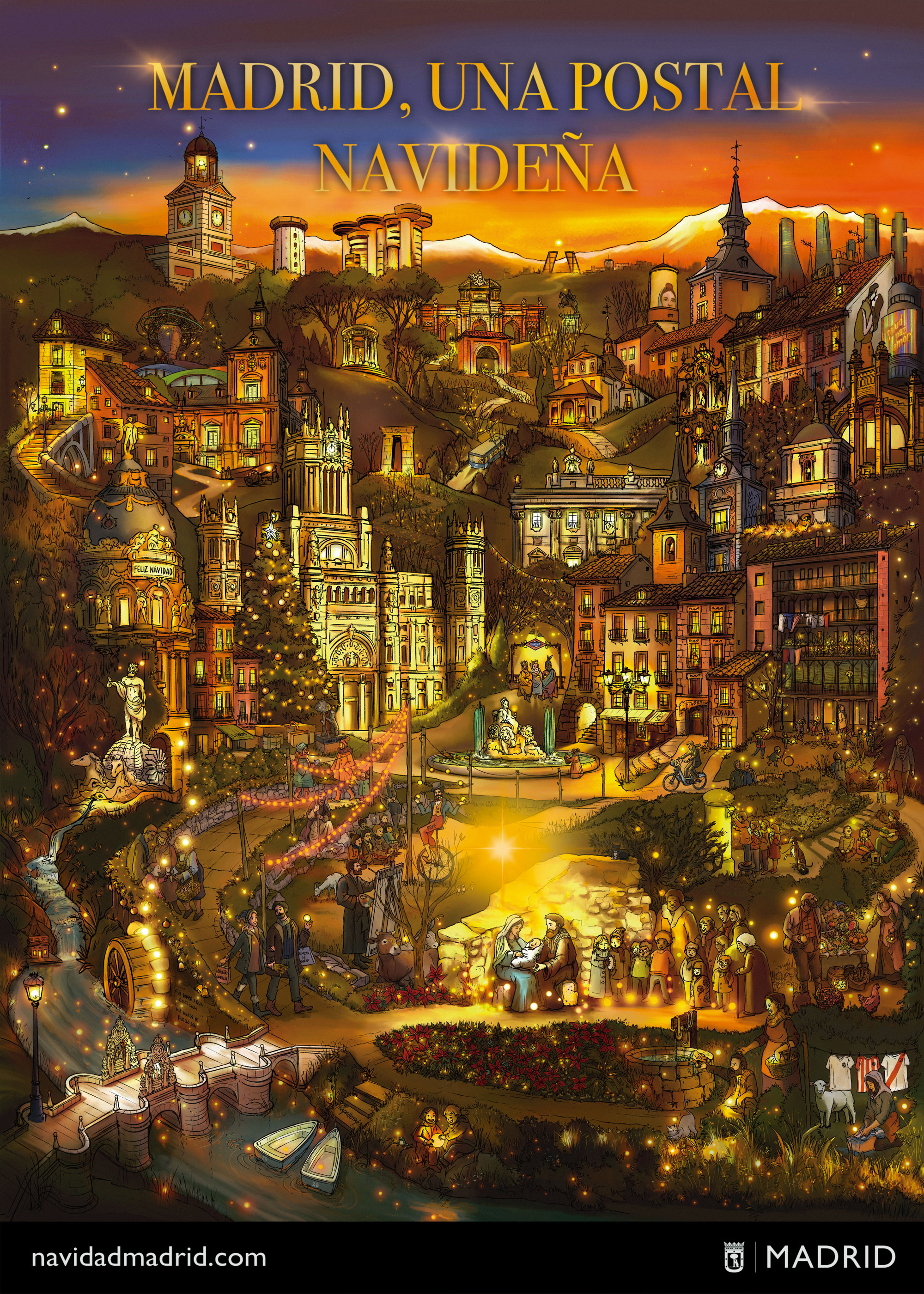 El Área de Cultura, Turismo y Deporte del Ayuntamiento de Madrid facilita la descarga del cartel oficial de la campaña de Navidad 2025 - 2026 creado por Polinho Trapalleiro.