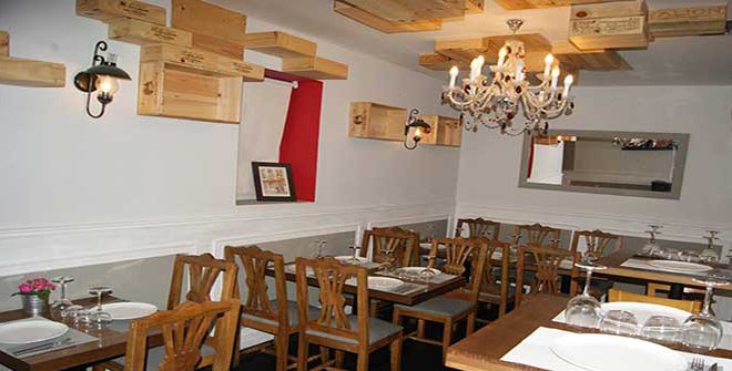 El local está decorado con un estilo rústico y clásico y dispone de terraza exterior.